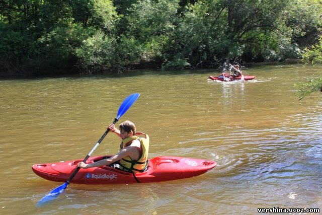 Жарища стояла, надо сказать, знатная! Наконец-то можно прогреть остывшие во Владике косточки! Мальчишки сразу же заинтересовались каяками. Сначала я боялась отпускать их далеко от берега и "пасла", стоя в воде и готовая в любой момент прыгнуть за незадачливым гребцом. Андрей Павлов учил ребят каячить и вот уже две лодки бесстрашно рассекали струю!